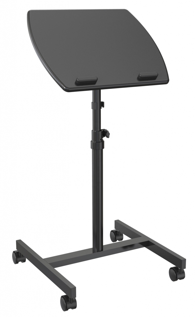 Výškové nastavení, podnož, krásné provedení, stabilita, spolehlivost, možnost práce v sedě nebo ve stoje. Nosnost 10 kg. Velmi pěkný, stabilní a spolehlivý stolek na notebook, laptop nebo iPad. Stolek můžete využít i jako pracovní stanici, prodejní pultík, podstavu na projektory. Vhodný taktéž na prezentace nebo výstavy, do stánků atp. Stolek má vynikající stabilitu a špičkovou poctivou konstrukci. Praktický společník pro vaše prezentace, výstavní stánky, kanceláře nebo domácnosti. Vhodný i do malých prostorů. Stolek vyniká spolehlivou konstrukcí, která je přitom velmi pěkná. Díky snadné výškové polohovatelnosti můžete kdykoliv pracovat vsedě nebo naopak vestoje. Určitě oceníte i praktickou podnož, kterou lze taktéž výškově regulovat, v případě potřeby ji můžete i ze stolku demontovat.