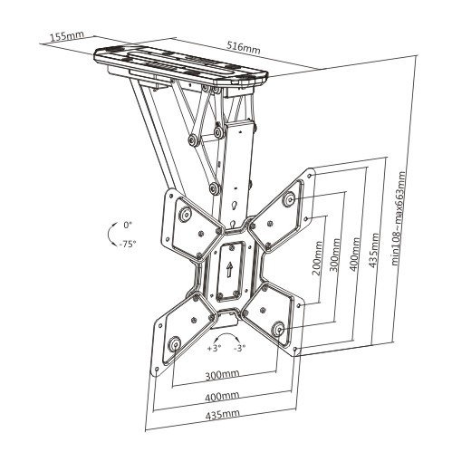 Držák TV s doporučenou úhlopříčkou 23 až 55" na strop, elektronický, polohování pomocí dálkového ovládání. Držák je vhodný pro zavěšení všech značek a typů televizorů, jejichž hmotnost je max. 30 kg a které podporují VESA standard od 100x100 do 400x400. Televizor můžete pomocí dálkového ovládání pohodlně naklápět dle potřeby v rozmezí 0° až 75°. Do paměti je možné uložit 2 polohy televize. Velmi snadná instalace a zapojení.