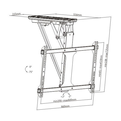 Držák TV 32 až 70" na strop, elektronický, polohovatelný pomocí dálkového ovládání. Držák je vhodný pro zavěšení všech značek a typů televizorů, jejichž hmotnost je max. 35 kg a které podporují VESA standard od 200x100 do 600x500. Doporučená úhlopříčka televizoru je 32 až 70". Televizor můžete pomocí dálkového ovládání pohodlně naklápět dle potřeby v rozmezí 0° až 75°. Do paměti je možné uložit 2 polohy televize. Velmi snadná instalace a zapojení.